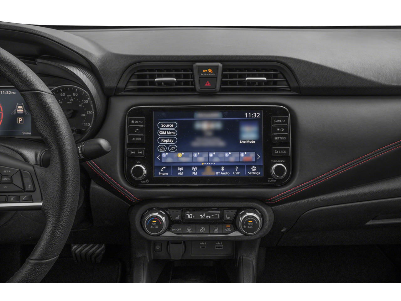 - Radio: AM/FM Audio System -inc: RDS, MP3, aux-in, 8" color touchscreen display (A-IVI PH2 DA), SiriusXM satellite radio, NissanConnect Services powered by SiriusXM featuring Apple CarPlay and Android Auto, Bluetooth® hands-free phone system, streaming audio via Bluetooth®, interface for iPod and other compatible devices, hands-free text messaging assistant, Siri Eyes Free/Google Assistant voice recognition, 6 speakers, 3 USB ports (2-charge only)