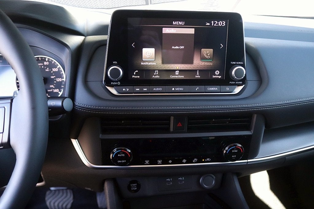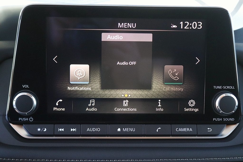 - Radio: AM/FM NissanConnect -inc: 6 speakers plus 2 tweeters, Apple CarPlay, Android Auto, 8" color touch screen display, Bluetooth®, 2 front USB type-C, Wi-Fi hotspot and NissanConnect Services powered by SiriusXM