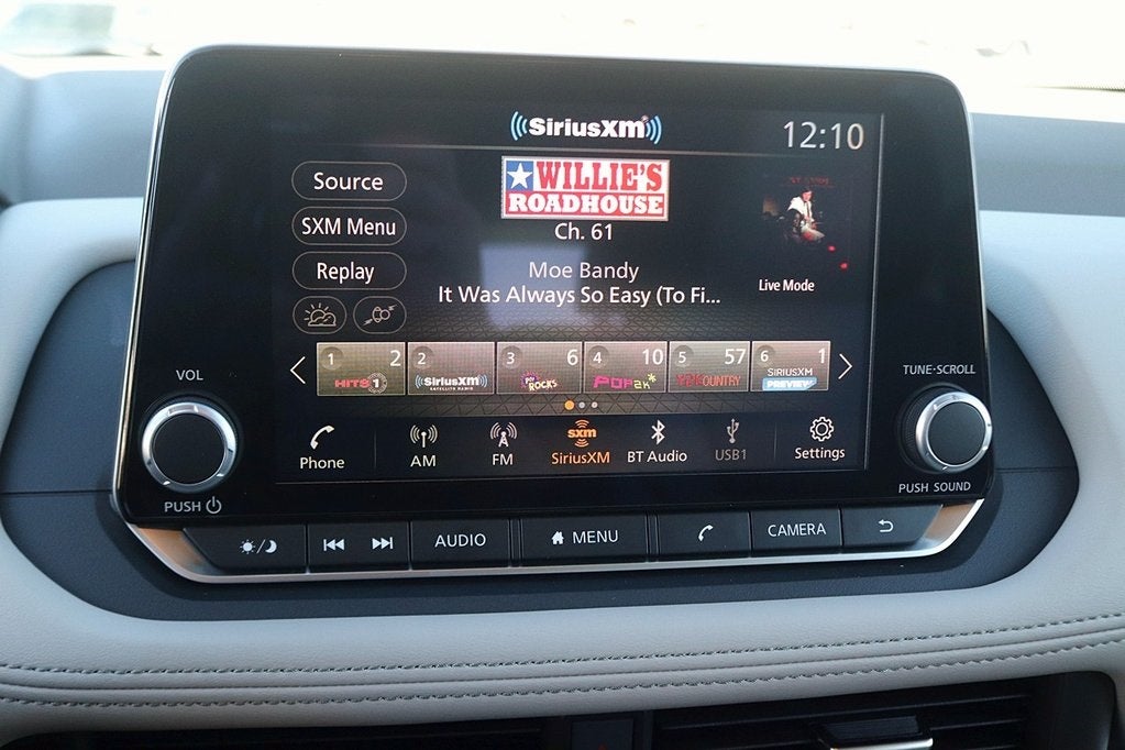 - Radio: AM/FM NissanConnect -inc: 6 speakers plus 2 tweeters, Apple CarPlay, Android Auto, 8" color touch screen display, Bluetooth®, 2 front USB type-C, Wi-Fi hotspot and NissanConnect Services powered by SiriusXM