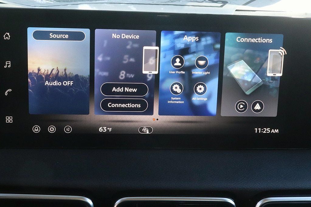 - Radio: AM/FM w/RDS/MP3 -inc: 4 speakers, 12.3" NissanConnect multimedia center display, Bluetooth® hands-free phone system, streaming audio via Bluetooth®, hands-free text messaging assistant, Siri Eyes Free, Google Assistant voice recognition, wireless Apple CarPlay and Android Auto and (2) front USB connection port (type C)