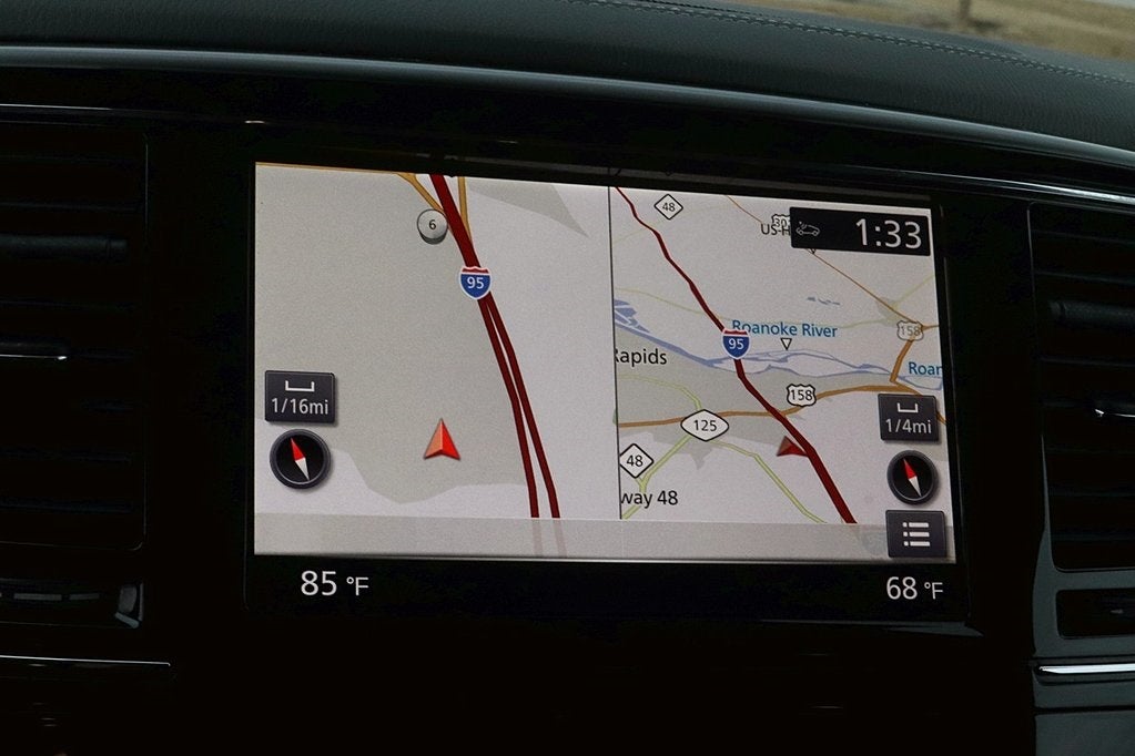 - Radio: Bose Audio System w/13 Speakers -inc: driver's audio stage, INFINITI controller w/dual HD touch-screen, 8" upper and 7" lower displays, speed-sensitive volume control, illuminated steering wheel-mounted audio controls, Radio Data System, HD radio technology, Apple CarPlay, Siri Eyes Free, Android Auto, INFINITI navigation w/lane guidance and 3D building graphics,premium traffic w/live traffic information (5-year trial periord), TomTom weather w/(5-year trial period), wi-fi hotspot (30-day or 1GB trial, whichever comes first), SiriusXM radio w/advanced audio features (3-month trial period), SiriusXM Traffic w/real-time traffic information (3-month trial period), SiriusXM Travel Link w/weather, fuel prices, stocks prices, sport scores, movie listings and parking (3-month trial period), over the air update compatibility for INFINITI InTouch software, INFINITI voice recognition for audio, navigation, Bluetooth® and vehicle information, Bluetooth® hands-free phone system and streaming audio, hands-free text messaging assistant and 2 USB ports for compatible devices for audio streaming